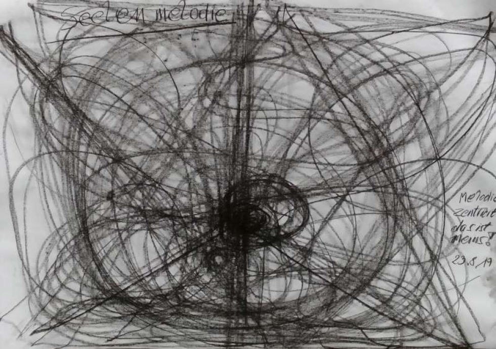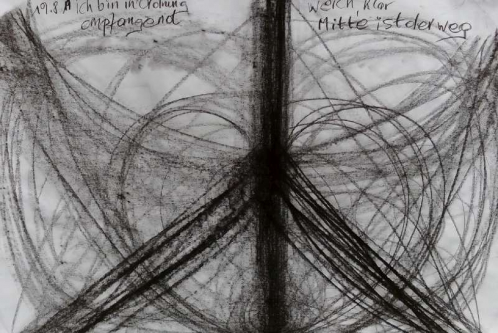 Auch im Geführten Zeichnen ist sich Iris näher gekommen, hat ergänzend Neues zum Ausdruck und in die Wahrnehmung bringen können. Es ist in ihr ein Bewusstsein für das, was sie im Grunde ausmacht erfahrbar geworden, für eine ihr immanente Ordnung. Sie ist sich transparent geworden in Gebärden und Formen, die ihre bisher gewusste bewusste Einstellung erweitern, vertiefen und ergänzen. Sie ist sich ihrer selbst in einer wesentlichen, existentiellen Prägung ergänzend zu den kausalen, biographischen Fakten bewusst geworden, hat sich darin kennengelernt und erlebt. Auf diese Weise ist tatsächlich eine neue Qualität in ihr nachgewachsen, von der sie bisher abgeschnitten war. Sie wusste zwar darum, konnte sich diese Qualität aber nicht konkret erschließen. Sie nimmt aus der Erfahrung mit, dass sie in sich heil und ganz ist, in Ordnung, d. h. in ihrer ureigenen Ordnung ist.